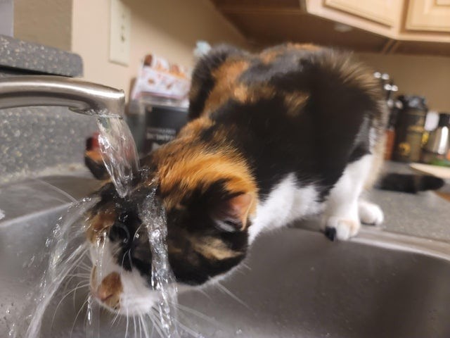 «Пьющая кошка — горе в семье», «У меня дома какие-то странные гекконы», «Подтягивания на подоконнике», «Плавленый кот», «Ей просто очень нравится вода из-под крана», - комментируют фото пользователи сети.