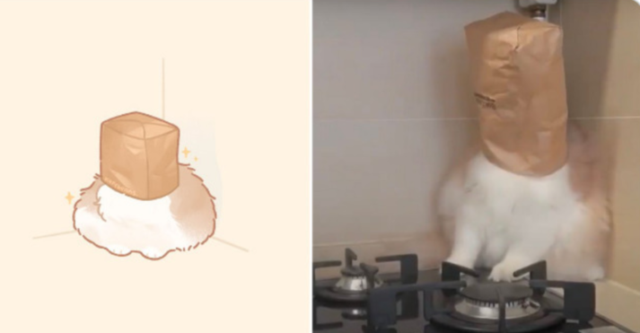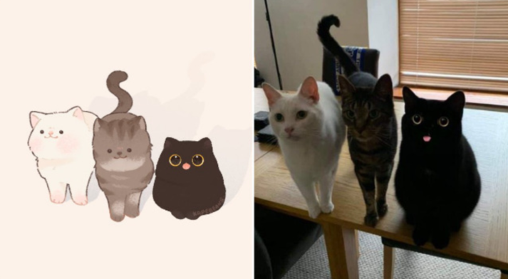 Филиппинская художница, известная в интернете под ником Bib, обожает смешные снимки животных. В свободное время девушка перерисовывает популярные и вирусные кадры с питомцами в своем фирменном стиле.