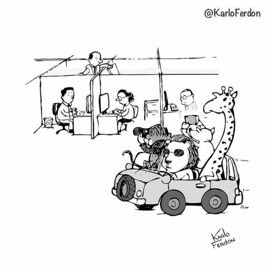 Чилийский художник Карло Фердон придерживается довольно простой позиции: не нужно рисовать комикс на несколько страниц, чтобы рассмешить людей и заставить их задуматься. Он доказывает эту точку зрения на собственном примере: в его иллюстрациях нет слов, да и состоят они всего из одного фрагмента.