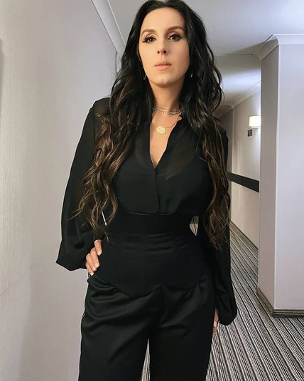 Джамала счастливо улыбается с фото и держит охампку букетов. На еще одном кадре она позирует в одном из сценических нарядов – полупрозрачной черной блузке, элегантных брюках и поясе-корсете.