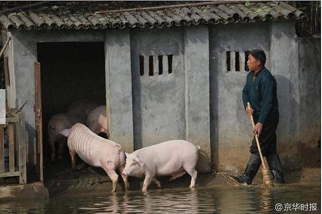 Китаец построил деревянную вышку у пруда рядом со своим свинарником, чтобы его свинки могли нырять в воду ежедневно, пишет dailymail.co.uk.