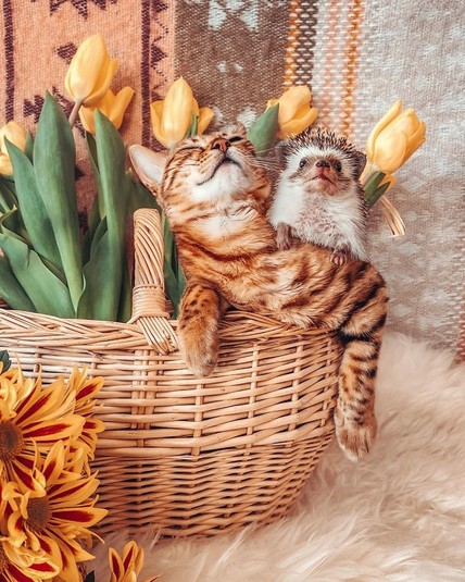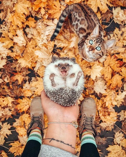 Такая дружба может показаться нереальной, обычно коты или равнодушны к ежам, или гоняют их по всем углам. Но эти двое ломают все стереотипы.