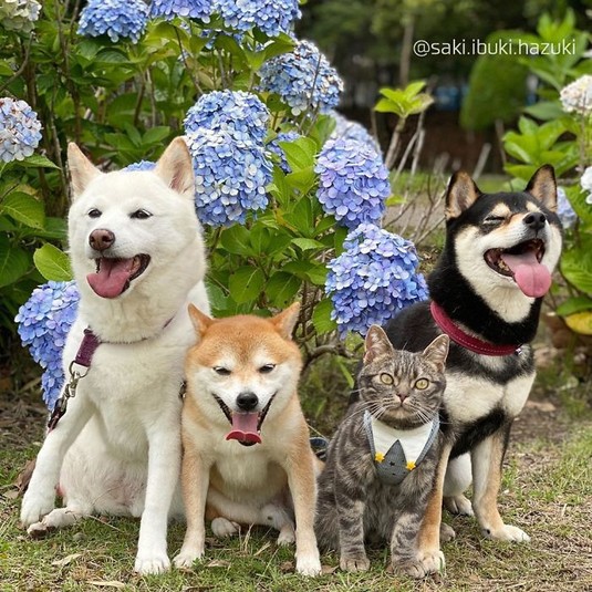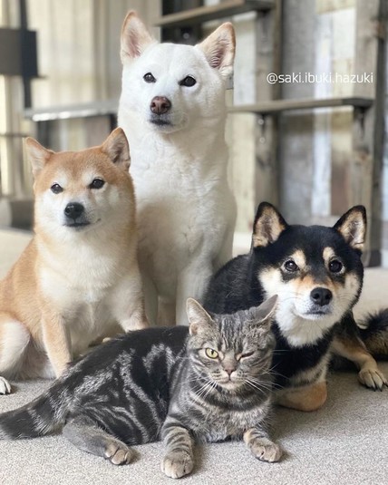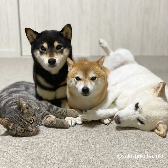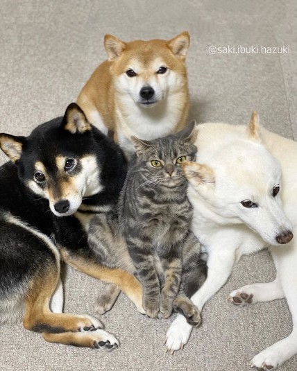 Кот по кличке Кики из Японии, около года назад ставший частью банды из трех сиба-ину, теперь считает себя одним из псов