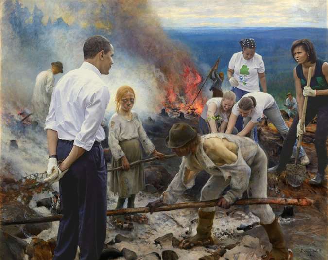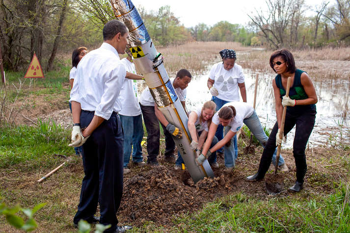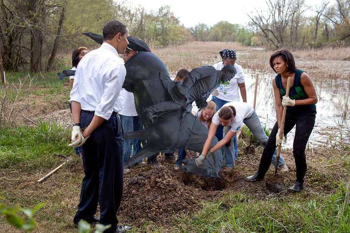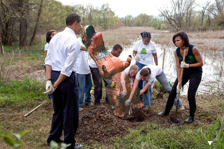 Бурное обсуждение в сети вызвали коллажи и фотожабы на снимок, показывающий, как семейство 44-го президента США Барака Обамы сажает дерево в парке Кенилворт Акватик Гарденс (Вашингтон). Это произошло во время специального мероприятия по озеленению в 2009 году. Это фото тогда сделал личный фотограф Обамы Пит Соуза. Однако тогда на него никто не обратил внимание. Фото стало предметом насмешек пользователей лишь сейчас.