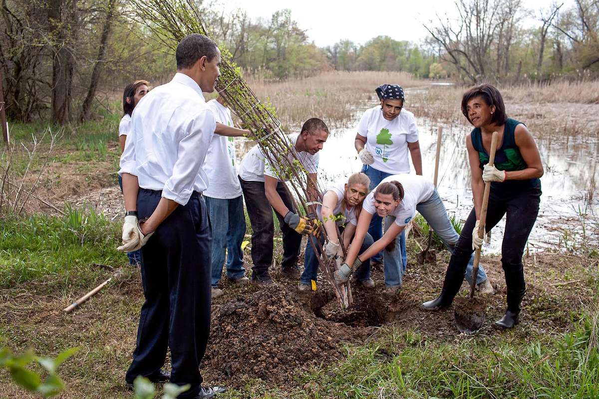 Сеть осмеяла Барака Обаму, который сажает дерево