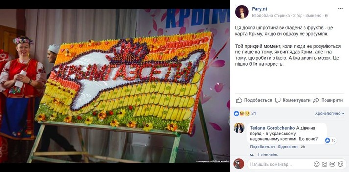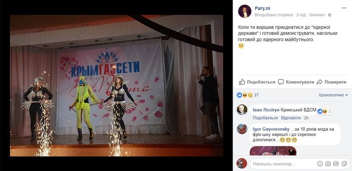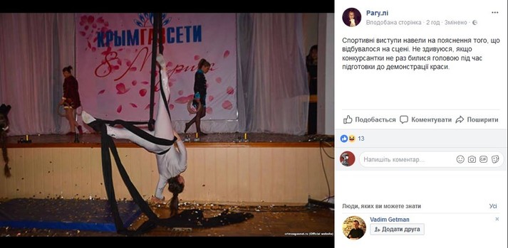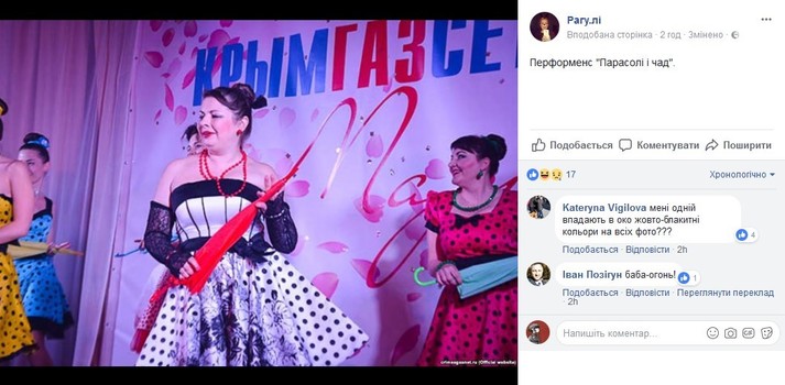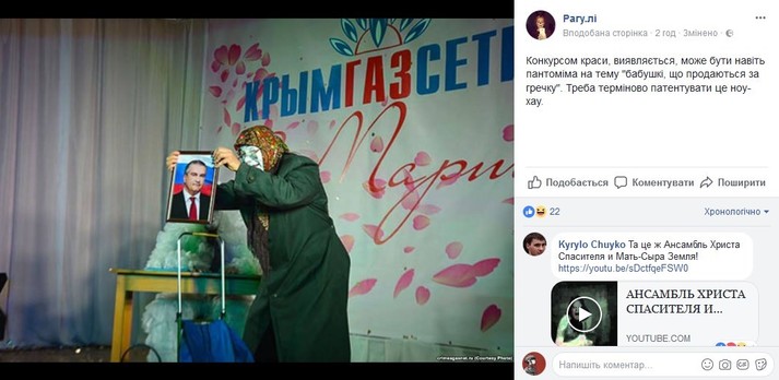 Также автор паблика отметила: «Для того, чтобы подчеркнуть маразматичность всего, что происходило на сцене, туда ко всему выпустили «казаков».