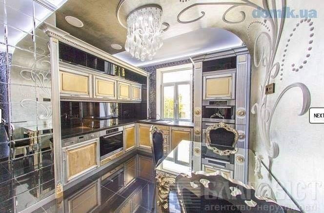 Появились фотографии киевских апартаментов, стоимость которых составляет 13,2 млн. грн. Экстравагантный интерьер привлёк внимание пользователей своим нарочитым богатством, излишним пафосом и вульгарным мещанством. Общая площать квартиры – 160 кв. м.