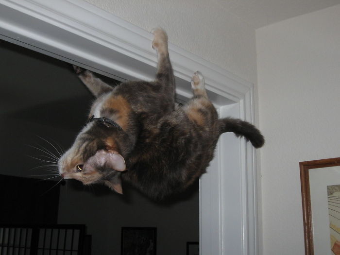 Любимые пушистые питомцы всея интернета — поистине удивительные создания. Посудите сами, они любят спать в самых неожиданных местах, сидеть в неудобных позах, да и в целом ведут себя так, словно они прибыли к нам с другой планеты. И вот еще одно доказательство их странности — нежелание подчиняться гравитации и законам физики.
