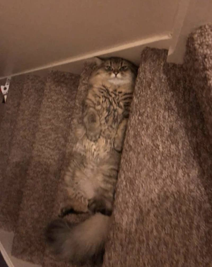 «Увидел редкую возможность устроиться уютно и не стал ее упускать», «Малыш, который просто очень любит коробки», «Странный выбор места, зато дети точно не доберутся до него», «Когда хочешь стать единым с природой», «Котята, считающие, что миски нужны не для еды, а для сна», «Кот, который любит рисковать, маскируясь на ступеньках», «А так и не скажешь, что ему удобно», комментируют фото пользователи сети.
