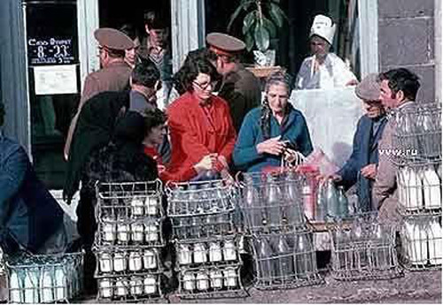 Для начала несколько слов о том, откуда же бралась та самая «тара». Молочные продукты (молоко, кефир, сливки и т.д.) стали широко продаваться в стеклянной таре примерно с начала 1960-х годов, до этого в городах поменьше они продавались исключительно на разлив, бутилированное молоко было только в крупных городах. Бутылки для обычного молока, топленого молока, кефира и сливок были типовыми, отличаясь только цветом верхней крышечки из фольги — белая для молока, желтая для топленого, зеленая для кефира и фиолетовая для сливок.