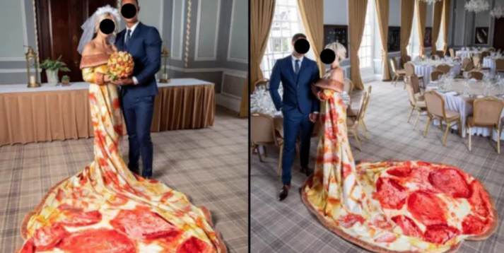 «Запоминающееся появление новобрачных», «Когда чувствуешь себя принцессой и тебе нужна карета, но лошади передвигаются слишком медленно», «Как вам такое платье с принтом пиццы пеперони и соответствующим букетом?», «Очень сомнительное решение для подарка гостям, не думаете?», «Свадебный торт, намекающий на причину вероятного развода», - комментируют фото пользователи сети.