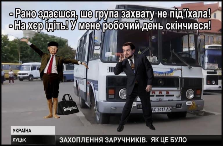 В частности, скандальная видеозапись с моментом задержания террориста Максима Кривоша, который более 12 часов удерживал заложников, стала причиной появления серии фотожаб. Особенно от их авторов досталось главе МВД Арсену Авакову и президенту Украины Владимиру Зеленскому.