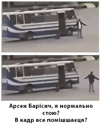 В частности, Кривош выходит из поднятыми руками из автобуса, а потом стоит и ждет, пока его задержат.
