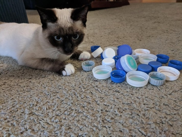«Коллекция крышечек моего кота, которую я нашел под диваном», «Кошка не даст мне сделать прическу, пока не поиграет в перетягивание резинки и не попытается ее съесть», «Видимо, ему нравится сидеть между решеткой и стеклом», «Ребята, объясните, что не так с моей летучьей мышью?», «Наш кот маскируется под картофелину», «Добрый вечер», - комментируют фото пользователи сети.