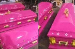 Рожеві труни продаються в похоронному бюро «Альфа і Омега» в місті Ауачапан, неподалік кордону з Гватемалою. Власник бюро Ісаак Вільєгас розповів, що він запропонував пофарбувати труни в рожевий колір перед прем'єрою фільму про Барбі в липні, проте «зворушливість Латинської Америки» через фільм переконала його прикрасити тканинні підкладки трун зображеннями ляльки і маленькими білими зірочками.