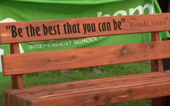 Фраза «Будь как можно лучше», которую учительница часто произносит на уроках, была начертана на памятной скамейке в школьном дворе
