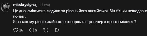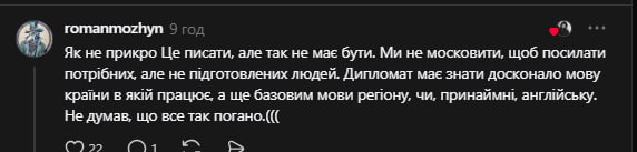 - «Хочу звернути вашу увагу на те що «вимова» це не дорівнює знання чи незнання мови. Багато слів англійських є складними для нас у вимові. А особливо якщо це британська англійська, а не американська».