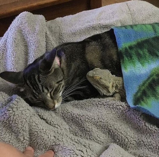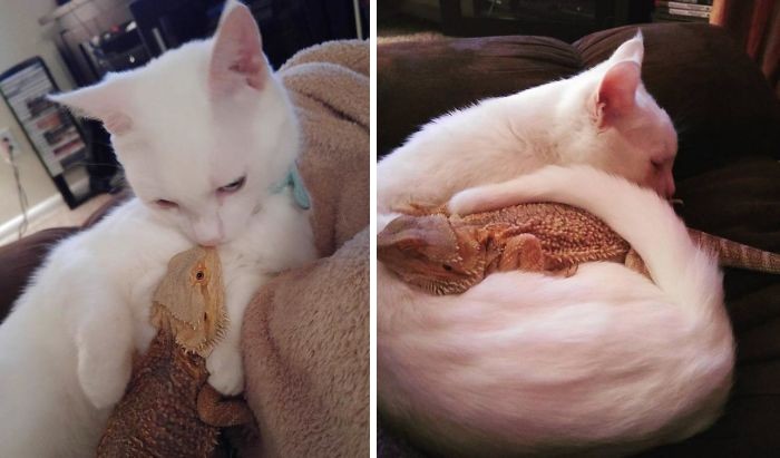 Кошки и ящерицы — это настолько разные животные, что сложно представить их в качестве лучших друзей или соседей по квартире. Но, как выяснилось, они могут вполне мирно сосуществовать на одной территории и даже тесно общаться... до поры до времени.