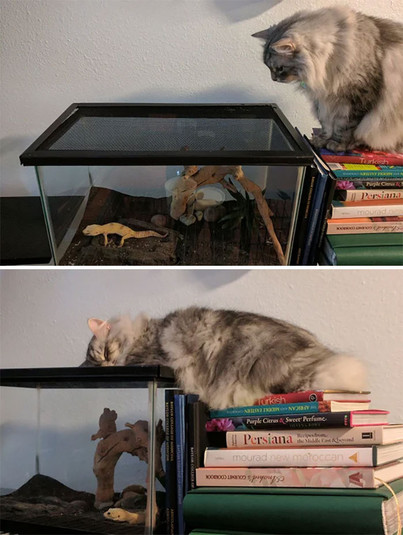 Уморительные фото о сложных отношениях кошек и ящериц