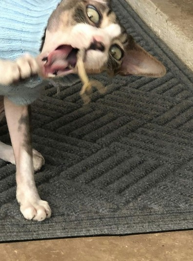 «Это фото сделал мой коллега. Падающий кот, летающая ящерица», «Лучшие друзья», «Кот моего друга играет с ящеркой», «Наблюдение за ящерицами — утомительная работа», «Моя кошка считает себя рептилией», «Что нам делать с этим миниатюрным динозавром?», - комментируют фото пользователе сети.