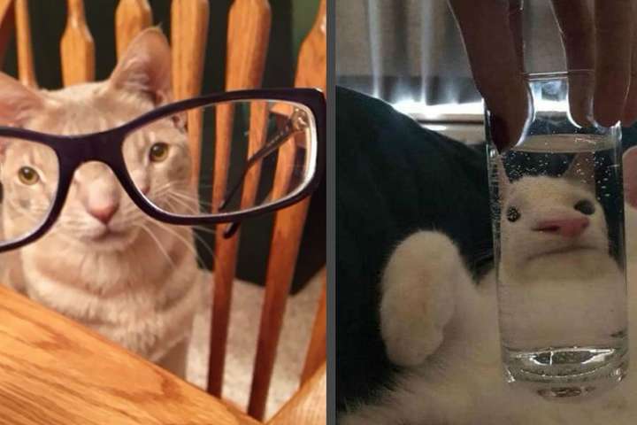 Мы собрали для вас лучшие снимки животных, чьи хозяева решили вдоволь похохотать над своими питомцами, «искаженными» стеклянными предметами.