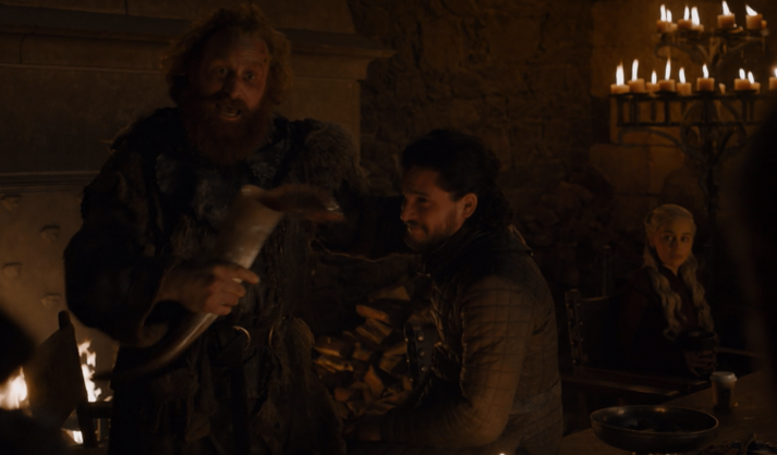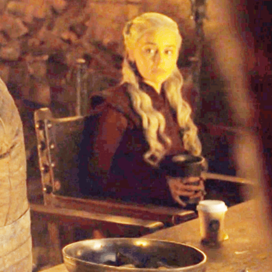 Само собой, редкий для сериала ляп сразу же стал мемом, а пользователи в Сети на перебой начали гадать, кого же Дейенерис посылала за кофейком в ближайшее заведение Вестероса. Момент со стаканчиком можно найти на таймкоде 17:39.