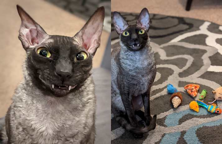 Пиксель всю жизнь прожил в Штатах, но глядя на его морду, этого не скажешь. Ушки-рога, клыки и ехидный взгляд выдают малыша с потрохами. Он явно попал в наш мир из преисподней.
