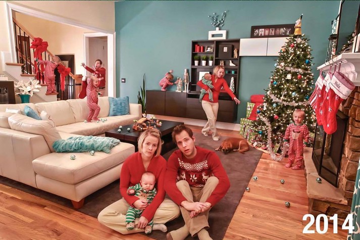 В первый раз, когда мы попытались сделать традиционную фотографию для рождественской открытки, у нас были до смешного плохие результаты. Отсюда и родилась традиция — делать открытки, олицетворяющие хаос воспитания сразу нескольких детей, — рассказали Стэнли развлекательному порталу Bored Panda