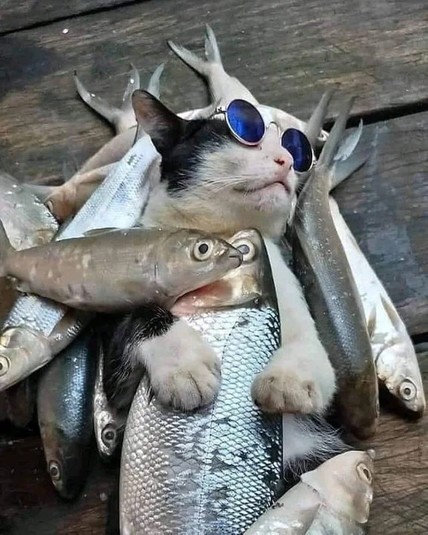 Ну а для тех, кто уже видел ту самую картинку, мы предлагаем взглянуть на другие снимки котиков и их любимых водоплавающих вкусняшек, за которые питомцы готовы отдать все свои 9 жизней.