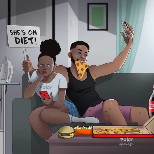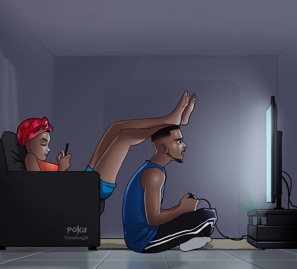 Африканский иллюстратор из Ганы, известный в Сети под псевдонимом Poka Arts, создает остроумные и правдивые рисунки с участием своей любимой жены и детей, и на них невозможно смотреть без смеха.