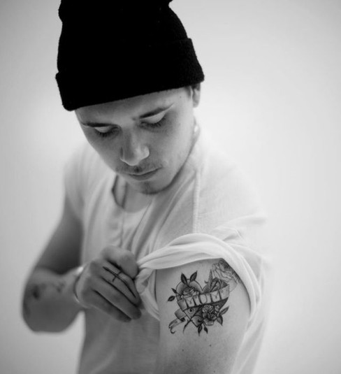 Бруклин также похвастался совсем новой татуировкой на левой руке, которую он посвятил своей маме, Виктории. Кроме того, любовь к ней он также выразил в рисунке на левой груди, написав: «Мамин мальчик».
