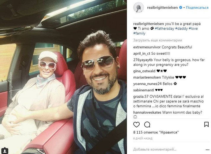 Новорожденная «разбавит» сугубо мужскую семью Нильсен, у которой четверо сыновей от предыдущих отношений: 34-летний Джулиан от музыканта Каспера Виндинга, 28-летний Киллиан от игрока в американский футбол Марка Гастино, 25-летний Дуглас Аарон и 18-летний Рауль Айртон от автогонщика Рауля Майера. На протяжении трех лет Нильсен была замужем за Сильвестром Сталлоне, но общих детей у них нет. В 2006 году Бриджит стала женой Маттиа Десси.