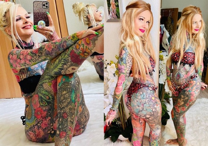 55-летняя бабушка покрыла все тело яркими тату, потратив €30 тысяч (фото)