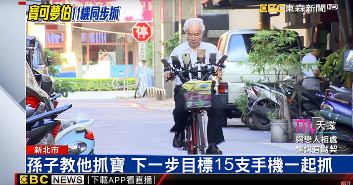 Улица, на которой живет 70-летний тайванец Чэнь Сан-Юань, с недавних пор стала туристической приманкой - люди идут сюда в надежде встретить сообразительного дедушку, который играет в Pokémon Go с 11 телефонов одновременно. Он крепит их с помощью специальной установки на поясе или фиксирует на велосипеде. С собой Чэнь Сан-Юань всегда носит павербанк и зарядные кабели, чтобы около 20 часов не отвлекаться от «охоты».