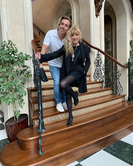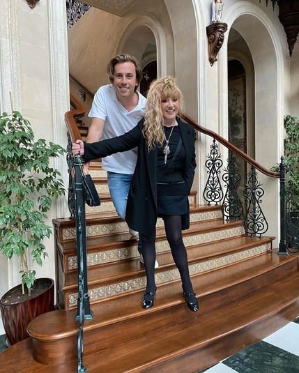Российская певица Алла Пугачева устроила фотосессию дома. В монохромном образе звезда кокетливо позировала рядом с мужем. Артистка выбрала футболку и мини-шорты с колготками. На плечи звезда накинула пальто, а шпилькам предпочла туфли на устойчивом каблуке. Наряд идеально подчеркнул стройную фигуру Примадонны. Певица сделала пышную прическу и макияж с акцентом на глаза.