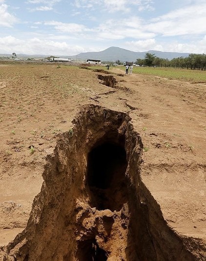 На юго-западе африканского государства Кения образовалась трещина, длина которой достигает нескольких километров. При этом ее глубина достигает 15 м, а ширина – 6 м. Геологи давно наблюдают за этим явлением и утверждают, что с годами эта трещина увеличивается. В некоторых заявлениях даже говорится о том, что эта трещина в будущем может расколоть регион.