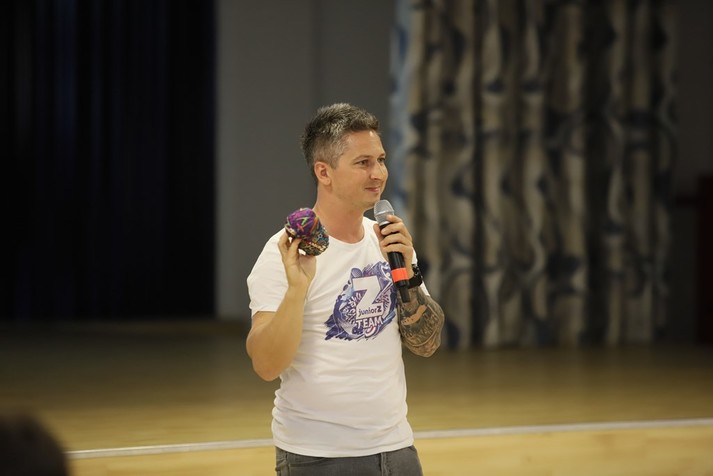 Украинский шоумен и ведущий проектов Нового канала представил им семь новых видов спорта: бадминтон, чирлидинг, регби, флорбол, петанк, фрисби и корфбол – объяснил и даже продемонстрировал, как играть. Это интересные и безопасные активности, которые ведущий предлагает внедрять на школьных уроках, чтобы заинтересовать учащихся и вызвать у них любовь к спорту.