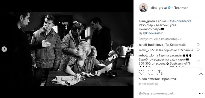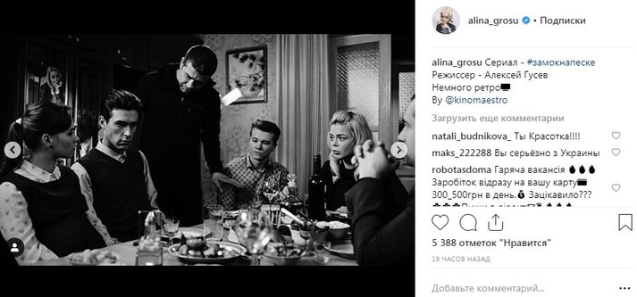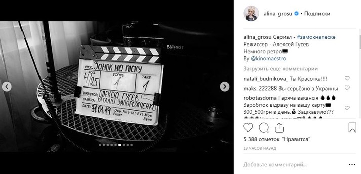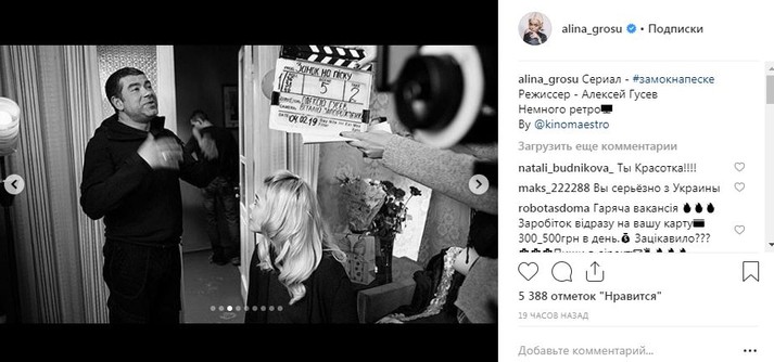 Известная певица Алина Гросу последнее время не вылазит со съемочных площадок. Как стало известно Scotch, на данный момент исполнительница и крестница Ирины Билык снимается в новом фильме телеканала «Украина» под названием «Замок на песке».