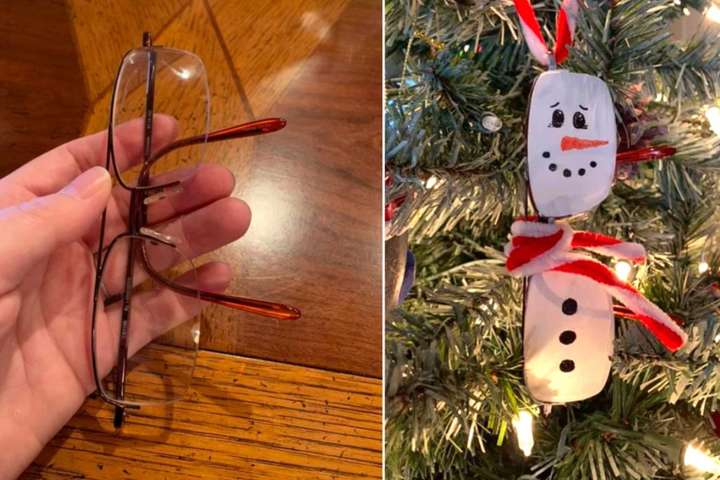 Кристи сделала из очков своего покойного мужа елочную игрушку, похожую на милого снеговика с доброй улыбкой.