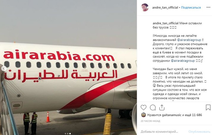 «Меня оставили без трусов. Никогда, никогда не летайте авиакомпанией Аіr Аrabia group! ️ Дорого, глупо и ужасное отношение к клиентам! Я стал переживать еще в Киеве в момент посадки в самолет, когда ко мне подбежали сотрудники авиакомпании. Чемодан был чужой, но меня заверили, что мой летит со мной. В результате по прилету стало понятно, что мой чемодан не долетел. Весь ужас ситуации, которая произошла, заключался в том, что вся моя одежда, одежда моей семьи и огромное количество лекарств было в нем. Нам пришлось экстренно, с усталым и голодным 3-летним ребенком на руках, заезжать в шоппинг-молл и покупать вещи, потому что иначе мы просто бы остались в 35-градусную жару в теплых трикотажных костюмах! ️ Без купальников и белья», - рассказал возмущенный дизайнер.