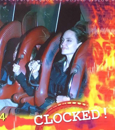 По случаю дня рождения актриса взяла перерыв на съемках «Малефисенты 2», которые в данный момент проходят на студии в Бакингемшире, и вместе с детьми - 13-летней Захарой, 12-летней Щайло и 9-летними Вивьен и Ноксом - отправилась в парк развлечений Thorpe Park, один из самых экстремальных в Европе.