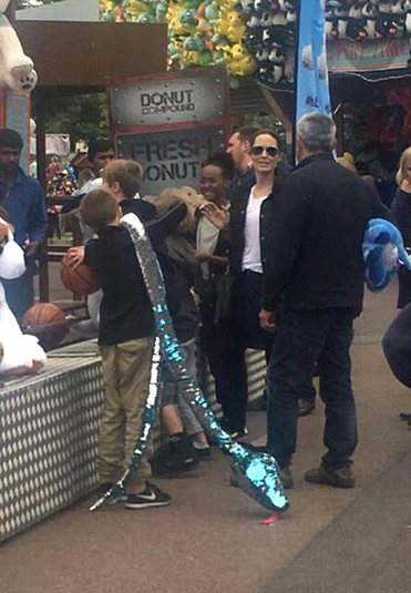 Судя по фото, Анджелина с детьми прокатилась на американских горках и попыталась выиграть плюшевые игрушки. Очевидно, что победу удалось одержать только Ноксу - он покинул парк с огромной блестящей змеей на плече, которая еще больше привлекала внимания к звездному семейству.
