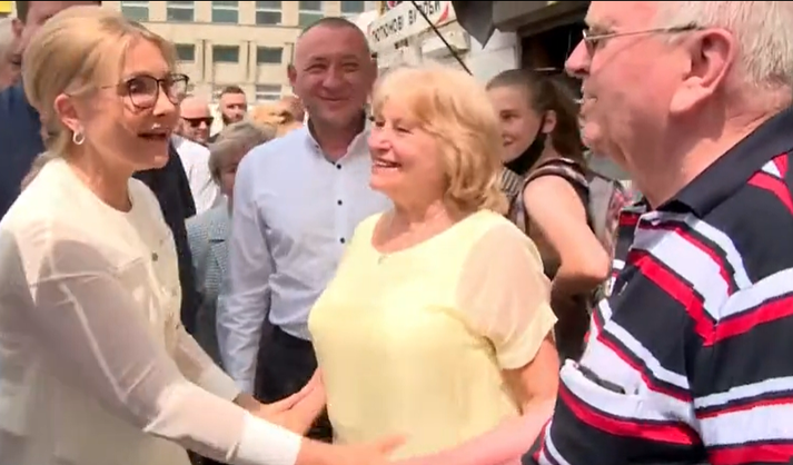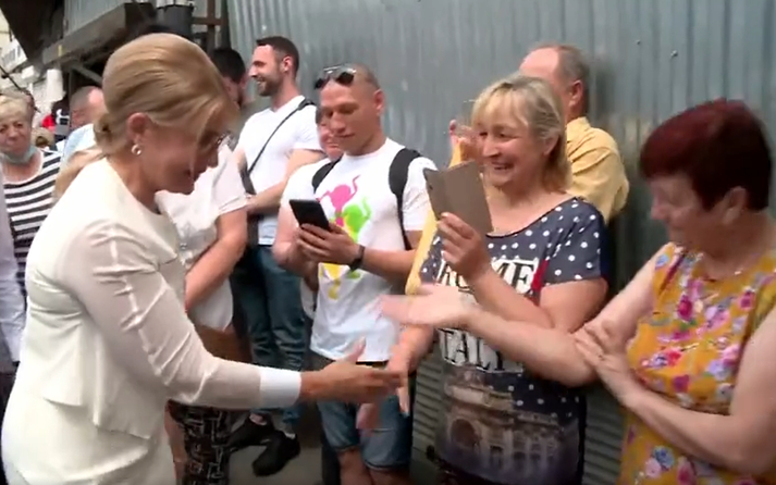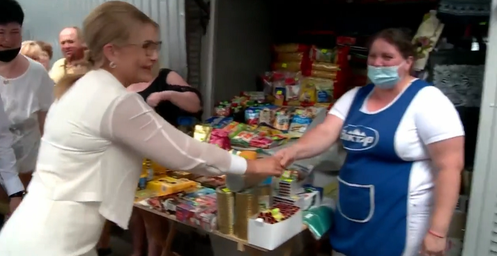 Без маски и дистанции. Юлия Тимошенко затискала людей на рынке в Тернополе (видео)