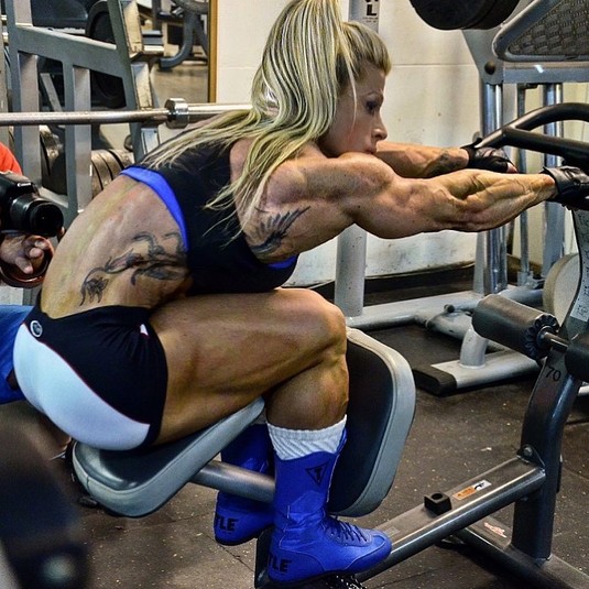 Бодибилдерша с «бедрами-убийцами» снялась в сетчатом комбинезоне (фото)