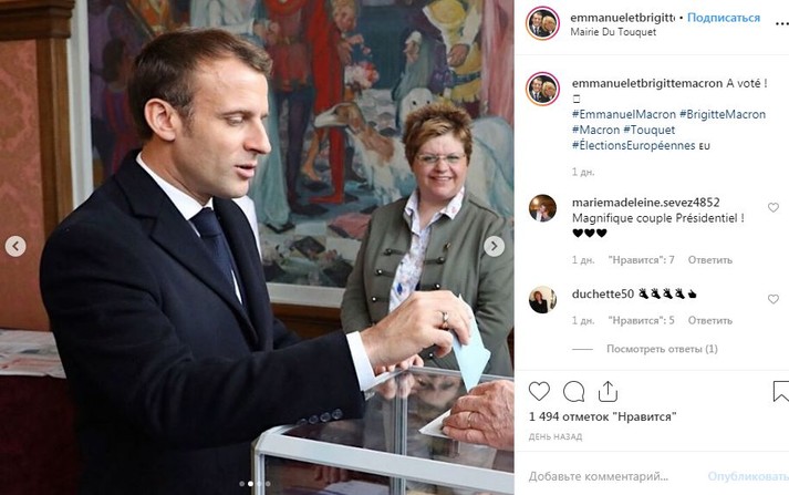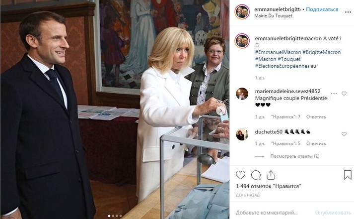В минувшие выходные состоялась выборы в Европарламент. На избирательном участке в городке Ле-Туке-Пари-Плаж в числе проголосовавших оказался 41-летний президент Франции Эммануэль Макрон и его супруга, 66-летняя Брижит.