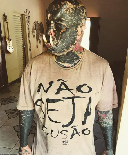 Как выглядит «человек-череп», который отрезал нос и зататуировал лицо в красный цвет