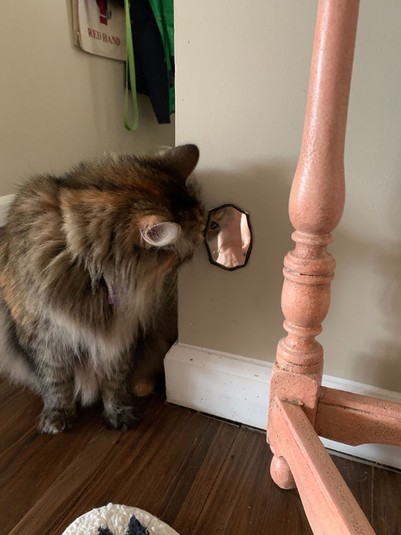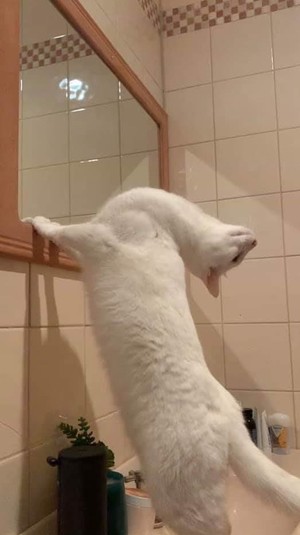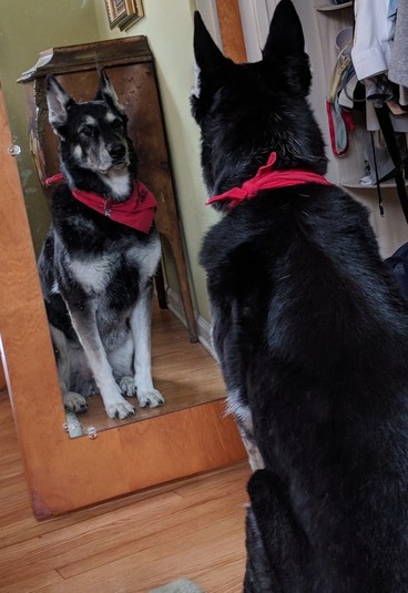 «Когда проснулся, застал собаку за тем, что она сидела, уставившись на себя в зеркале», «Моя кошка смотрит на себя в зеркале», «Я знаю, что ты чувствуешь, Роско, я знаю, что ты чувствуешь», «Я ль на свете всех милее?», «Нудл беспокоится, что я застряну в зеркале», -пишут пользователи.