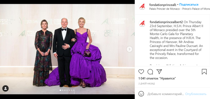 Князь Монако Альберт II посетил светское мероприятие, гала-вечер Planetary Health в Монте-Карло, вместе со знаменитой американской Шэрон Стоун. На мероприятии он вручил ей награду, которую до этого получали лишь мужчины.