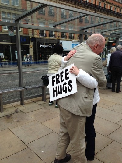 Сначала люди недоумевали, но потом к нему подошла женщина и сказала, что осталась одна и ей очень надо чтобы ее кто-нибудь обнял... Этот случай положил начало движению объятий в Австралии, а потом традиция перекинулась и в Европу.