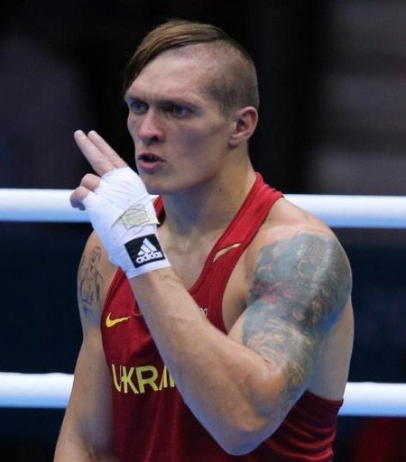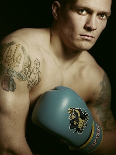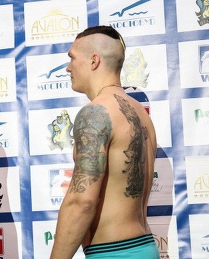 Украинский чемпион Александр Усик любит раскрашивать свое тело. На бицепсах у Александра набиты имена двух из трех его детей – Елизаветы и Кирилла. Олимпийские кольца и карта Украины на предплечье посвящены лету 2012 года.